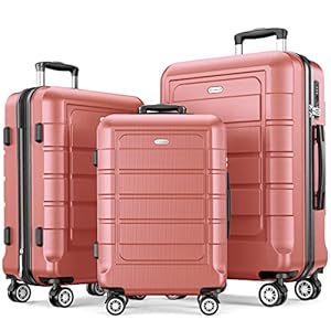 SHOWKOO Luggage Sets Expandable PC+ABS Durable Suitcase Sets Double Wheels TSA Lock Rose Gold 3pcs