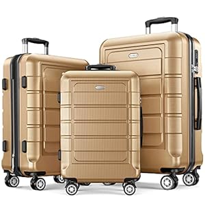 SHOWKOO Luggage Sets Expandable PC+ABS Durable Suitcase Sets Double Wheels TSA Lock Gold