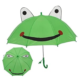 Figpal Kids Umbrellas for Rain Girls Auto Open School Compact Umbrella Boy 3D Animal Travel Umbrellas (Green Frog)