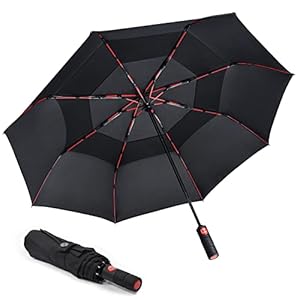 Lejorain Collapsible Umbrella Compact Travel – Portable Black Double Canopy Automatic Windproof Umbrella – Folding…