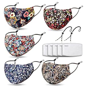 MOTEM Reusable and Washable Face Mask for Women Build-in Nose Wire and Filter Pocket,With 5 Filters ,2 Adjustable…