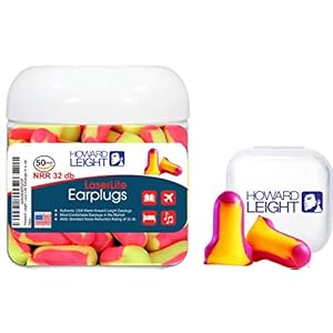Howard Leight Laser Lite Foam Disposable Earplugs for Sleeping, Blocking Snoring Sounds, 50 Count in a Jar