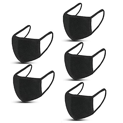 5 Pack Fashion Protective Face Covering, Mouth Covering Unisex Black Dust Cotton, Washable Reusable Cloth Dust Covering【USA Seller】