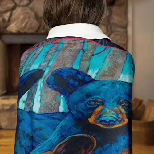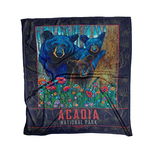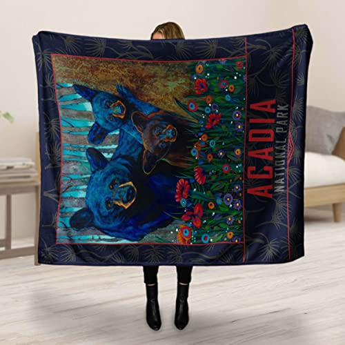 Acadia National Park Bear Trio Ultra Fleece Bed Sofa Travel Cozy Blanket from Oil Painting by Artist Kari Lehr 50″ x 60″.