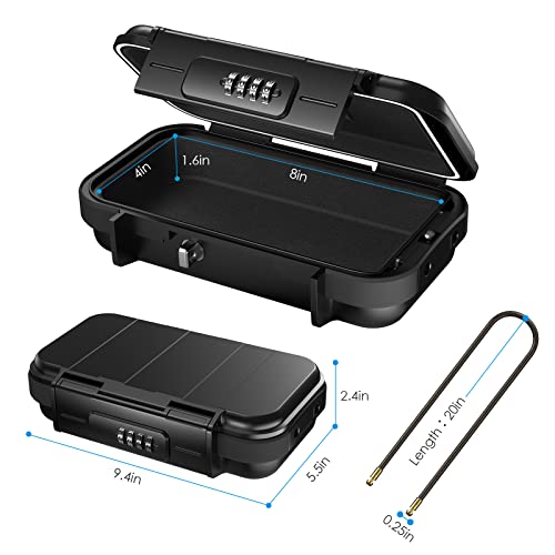 🔑【𝐂𝐨𝐦𝐩𝐚𝐜𝐭 & 𝐏𝐨𝐫𝐭𝐚𝐛𝐥𝐞 𝐒𝐚𝐟𝐞 𝐁𝐨𝐱】Our security case has special exterior size: 8.5in x 4.3in x 2.6in(L*W*H), this security safe box will be your perfect assistant when traveling or business trip, making it easy to put in your backpack and luggage; Internal size: 7.7in x 3.9in x 1.4in(L*W*H), it can safely store your cell phone, USB cable, power supply, passport, cash, credit cards, watches, jewelry and more. Wire hook length: 50cm; Wire diameter: 6.2mm; Package weight: 720g; Product weight: 640g