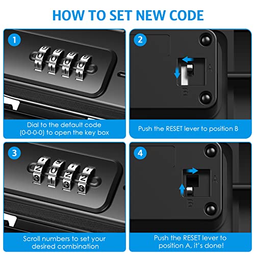 🔑【𝐇𝐢𝐠𝐡 𝐒𝐞𝐜𝐮𝐫𝐢𝐭𝐲 𝐒𝐚𝐟𝐞 𝐁𝐨𝐱】This lockbox consists of 4-digit password combination, up to 10,000 combinations of passwords, easy to use and change passwords. The default combination is 0-0-0-0, which is easily reset to your own number. Please note that once the password is reset, it is best to take a photo to record it, otherwise there will be no way to open it again.