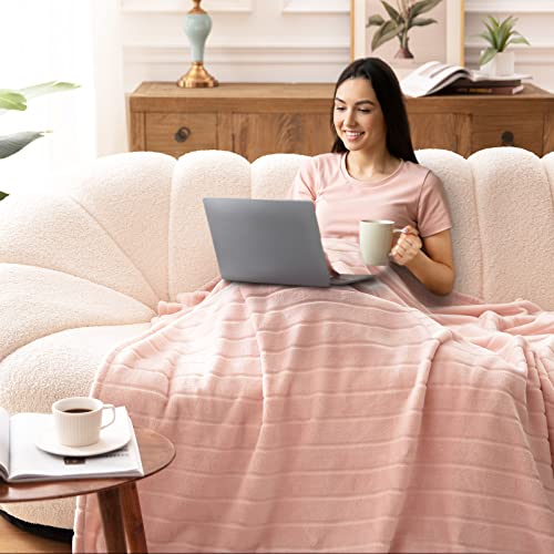 Bertte Plush Throw Super Soft Fuzzy Warm Blanket | 330 GSM Lightweight Fluffy Cozy Luxury Decorative Stripe Blanket for…