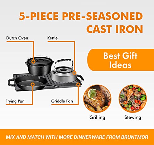 Bruntmor Camping Cooking Set Of 5. Pre Seasoned Cast Iron Pots And Pans Cookware/Dutch Oven Sets With Lids For Outdoor…