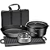 Bruntmor Camping Cooking Set Of 5. Pre Seasoned Cast Iron Pots And Pans Cookware/Dutch Oven Sets With Lids For Outdoor…