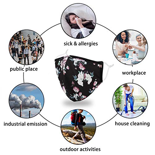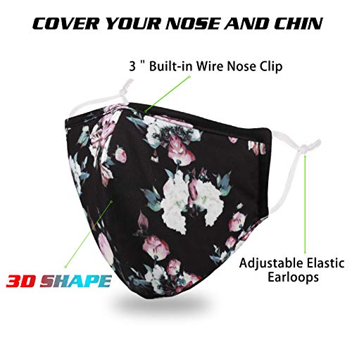 9*5.7 INCHES OF 100% PURE COTTON: Printed with colorful inks, the breathable mask is made of two layers 100% cotton to avoid rashes or irritations in the skin, the 3D design give freedom of movement and the lightweight cotton wicks away sweat and moisture, In addition is easy to adjust and wear avoiding sliding off and providing snug fit.
