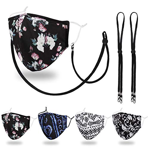 Cloth Designer Reusable Face Mask Women Female, Lanyard Strap Clip, Breathable Washable Fashion Cotton Fabric Madks…