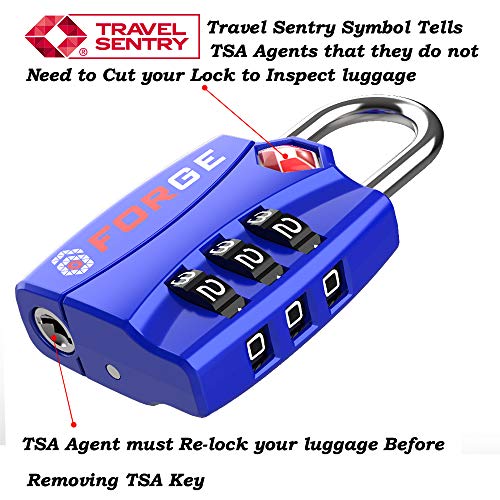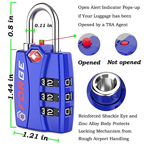 Forge TSA Luggage Combination Lock – Open Alert Indicator, Easy Read Dials, Alloy Body- Ideal for Travel, Lockers, Bags…