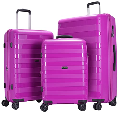 GinzaTravel 3-piece set includes 20-inch, 24-inch, 28-inch luggage with scratch-resistant PP material, expandable((all…