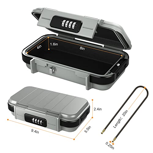 Portable Safe Box: Exterior Size: 9.5 inch(L) x 5.5 inch(W) x 2.4 inch(H). Interior Size: 8 inch(L) x 4 inch(W) x 1.6 inch(H). Its perfect size allows it to be easily put into your backpack and luggage and it is a good helper while you are on Beaches and Outdoors activities, travel or business trip.