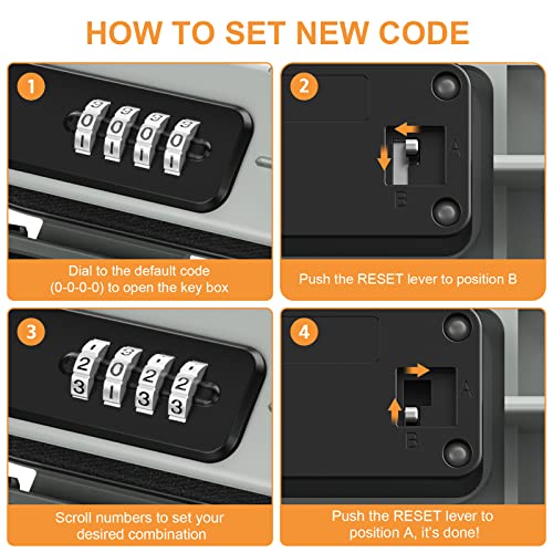 High-security Code Lock: This small safe has an adjustable combination lock with 4 dials, which can provide 10,000 combinations to ensure the safety of your keys. You can set your favorite number as a password, or you can modify the password. You no longer have to worry about the theft of the key just because you put it under the carpet or in the flowerpot.