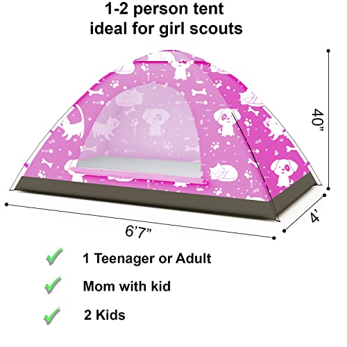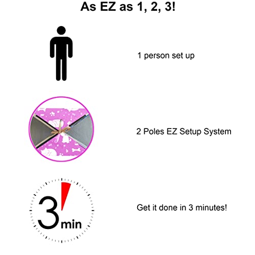 Dual Purposes Indoor Kids Play Tent or Outdoor Tent for Camping: The lovely design and its compact size make it a great indoor kids play tent or toddler tent – perfect toys for girls. On the other hand, the practical functions make it a perfect camping tent or backyard tent too