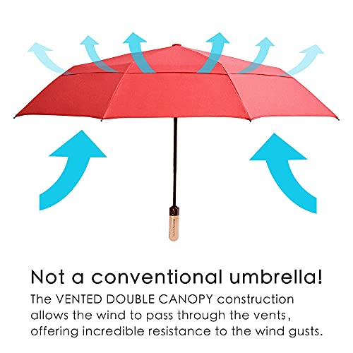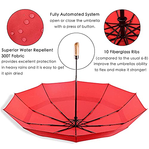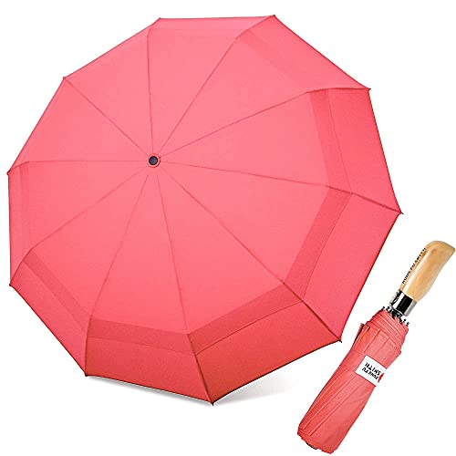 Best Material Possible & Rigorous Quality Control: 300T finest fabric, steel frame with windproof fiberglass ribs, luxury wooden handle and quality control, We designed our rain umbrella to withstand the elements without folding under the pressure. The luxury, ergonomic and wooden handle allows for stable carrying. A protective travel sleeve is included. Suitable for men, women, and kids