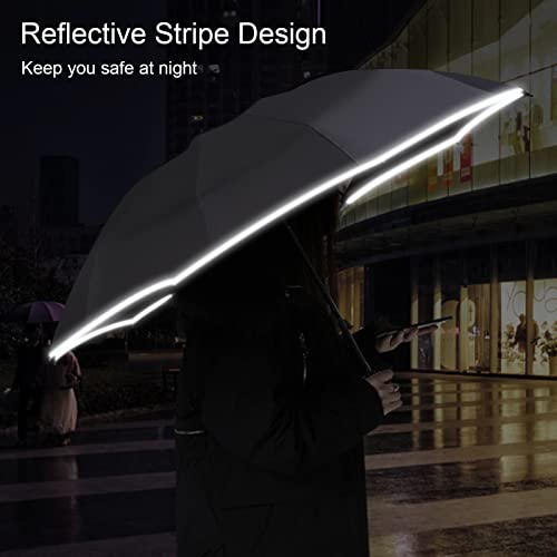 LA SUNGGO Travel Folding Umbrellas for Rain Windproof Portable Sturdy Large Compact Umbrella with Night Reflective…