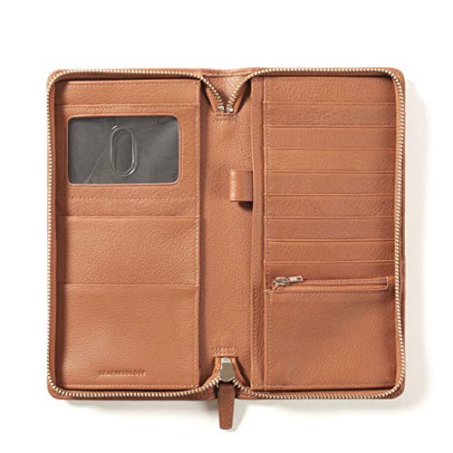 Leatherology Cognac Travel Zip Organizer Wallet, Passport Holder, RFID Available, Full Grain Leather