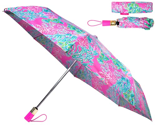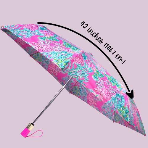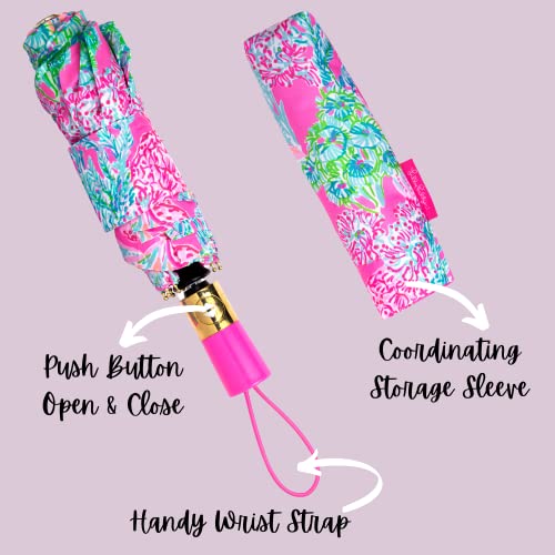 Stick umbrella is printed with the multicolored Lilly Pulitzer print, Seaing Things, with a coordinating storage sleeve. Brighten up rainy days with this super chic Lilly umbrella!