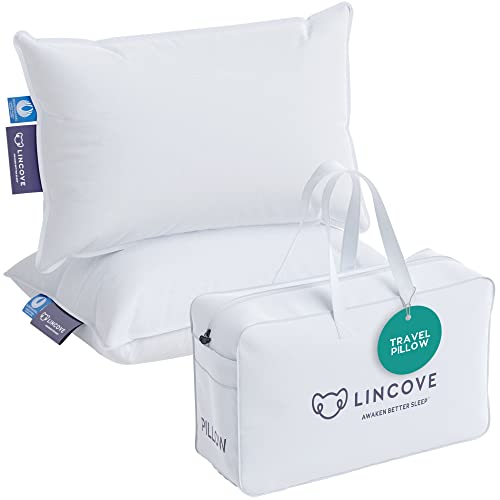 Lincove Canadian Down Feather Travel Pillow Pack of 2 – Luxury Pillows to Support Head, Neck, While Sleeping on…