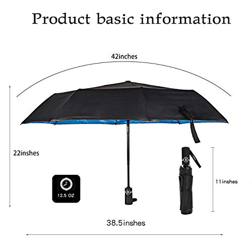 COMPACT AND LIGHTWEIGHT: This compact umbrella weighs less than 1lb, making it perfect for travel. This is 11 inches long if it‘s folded that easy to store in your purses, backpack, briefcase, gym bag, luggage and more. It is very easy to carry after folding the umbrella.