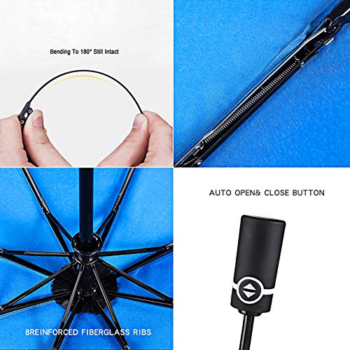 WINDPROOF AND DURABILITY: Our umbrella is 8 ribs that is made of Premium Fiberglass and High Quality Stainless steel. Tough enough to endure 55 mph of wind, providing long term reliability that you can count on. This has a very solid framework, the wind function is very strong. It may flex slightly to withstand the powerful wind, allow you to cope with challenging weather conditions with ease.