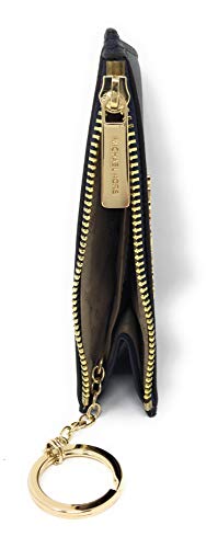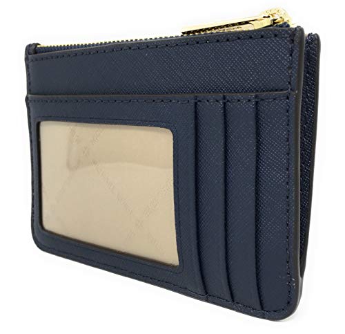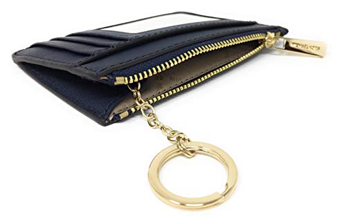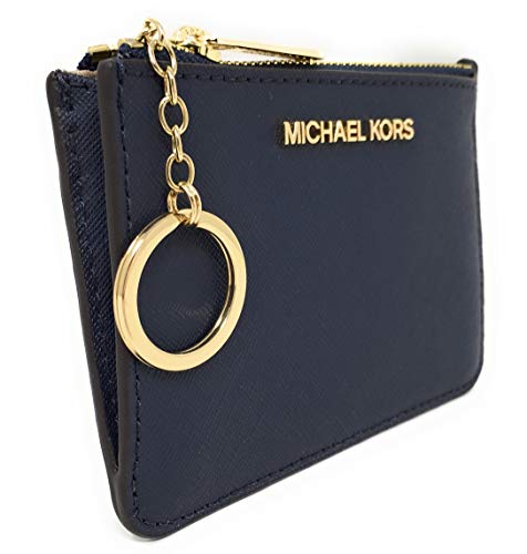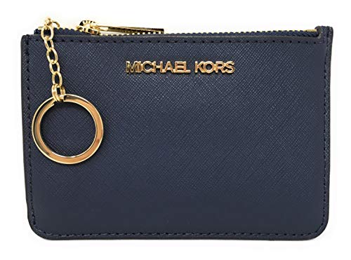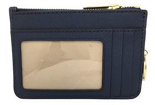 Michael Kors Jet Set Travel Small Top Zip Coin Pouch with ID Holder is crafted in beautiful and durable saffiano finished leather and finished with polished hardware. The top zip compartment offers a card slip and a tethered split key ring. The back offers (3) additional slips and a clear ID holder. Just the right size when you’re on the go, or to toss into a larger bag. It is compact and smeasures approximately 5 inches (L) x 3.5 inches (H) and has an MSRP of $118.00.