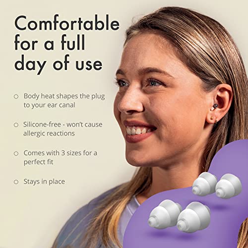 [COMFORTABLE FOR A FULL DAY OF USE] Made with Alpine’s hypoallergenic ThermoShapeMaterial that molds itself to your ear canal using body heat, the earplugs stay in place for a full day.