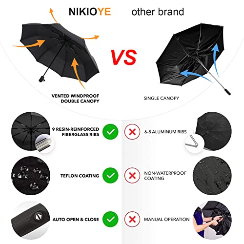 NIKIOYE Windproof and convenient travel umbrella, anti-UV umbrella, rainproof and sunproof folding reverse umbrella, one…