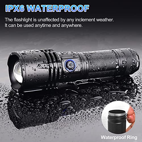 [Tactical Flashlights] The flashlight is made of super hard aluminum alloy, which makes flashlight wear-resistant, drop-resistant amd Sturdy. IPX6 waterproof flashlight can withstand extreme conditions such as storms.