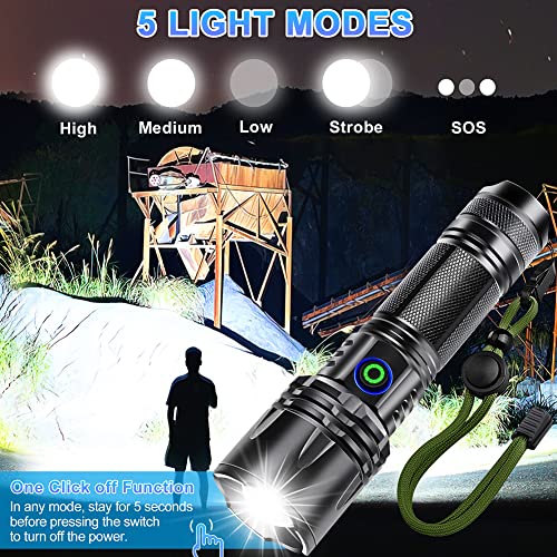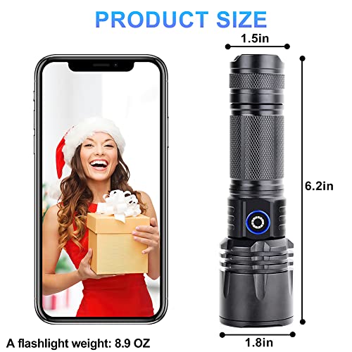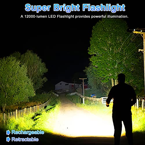 [Flashlights High Lumens] The newly upgraded XHP50 LED flashlight has a strong light mode of up to 12000 lumens. Flashlights provide you with large areas of illumination, and tactical flashlights can illuminate up to 1000 feet away.