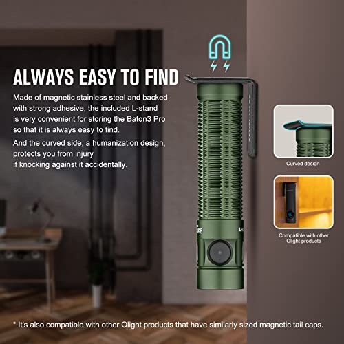 [Convenient to Store] The included L-shape stand, which can be stuck anywhere, makes it easier for you to store the flashlight after use