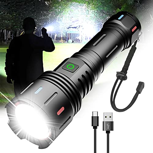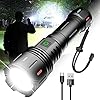 [INCREDIBLE BRIGHT FLASHLIGHTS & Upgraded LED CHIP]: Zlityty rechargeable flashlights with high lumens are equipped with the latest technology chips, and can emit up max to 150000 lumens, which is 20 times brighter than a regular flashlight. It can easily illuminate a 2500-square-foot room or focus on objects up to 2800 feet away.
