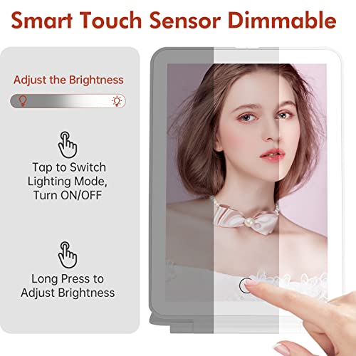 Rechargeable Lighted Travel Makeup Vanity Mirror with 3 Colors Lighting, Light Up Mirror with 72 LEDs and Touch Sensor…