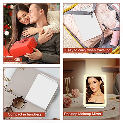🛩️【Ultra Thin Portable Makeup Mirror for Travel】The overall size of the led mirror makeup is about 7.6 x 5.1inch, 0.57 inch thickness when folded, weight is 0.57pounds, similar as IPAD mini size. With the slim, lightweight and compact design, you can easily put it into your handbag or luggage for perfect travel use.