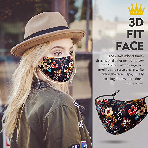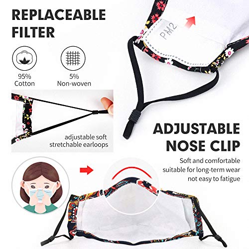 MOTEM Reusable and Washable Face Mask for Women Build-in Nose Wire and Filter Pocket,With 5 Filters ,2 Adjustable…