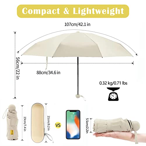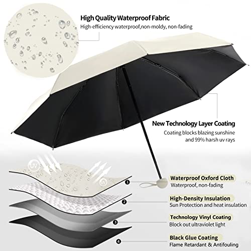 🌦️【Umbrella for Sun & Rain】► The mini travel umbrella black coating provide 99% UV protection. New vinyl layer technology protect you from the harmful UVA&UVB RAYS. Highly dense Pongee fabric keeps rain off quickly.Keep you cool in the sun and safe in the rain.