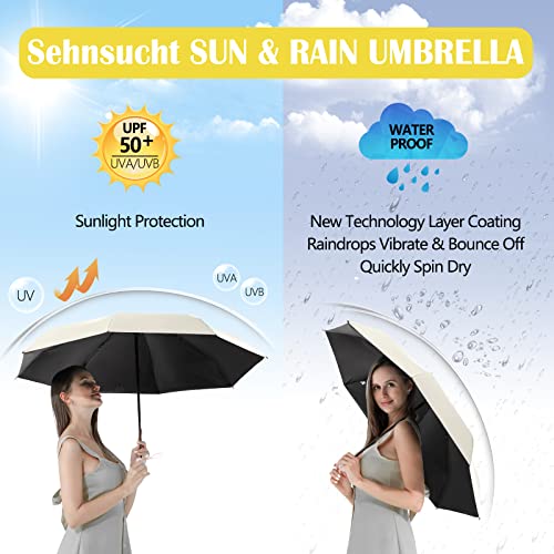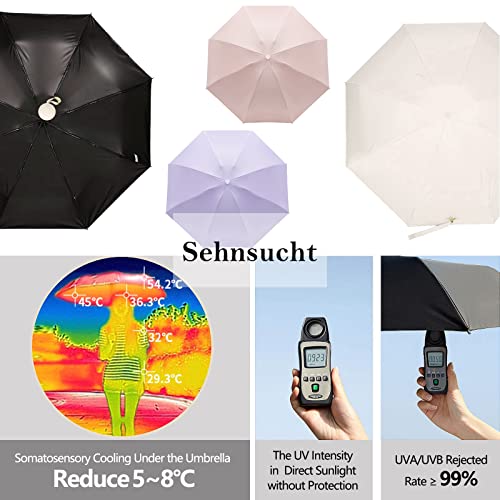 Sehnschut 8 Ribs Portable Travel Umbrella Mini Small Compact Folding Umbrella Parasol Sun&Rain Womens UV Protection…