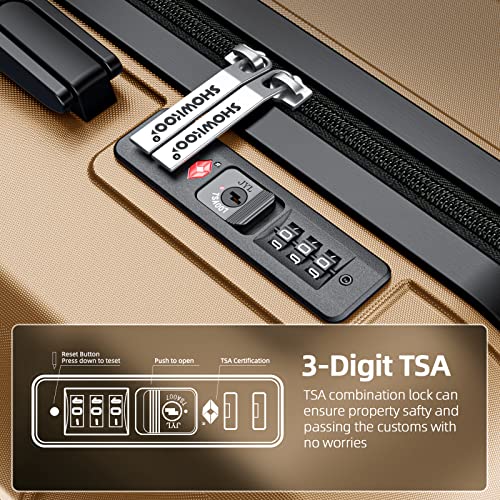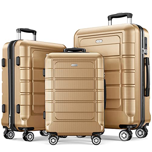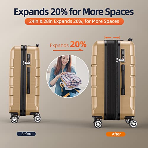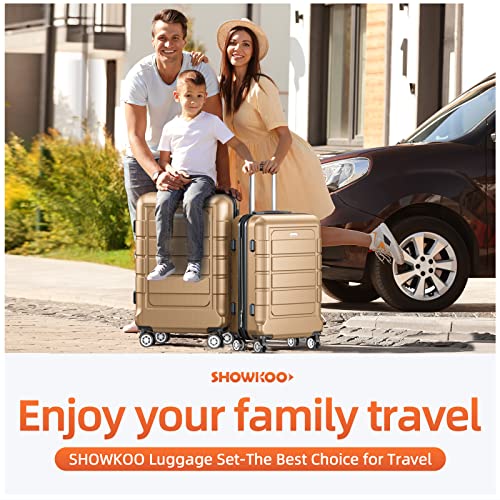 SHOWKOO Luggage Sets Expandable PC+ABS Durable Suitcase Sets Double Wheels TSA Lock Gold