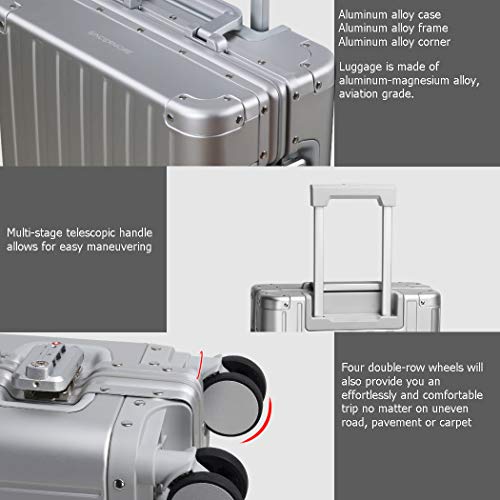 Sindermore Aluninum Luggage Cabin Hardside Suitcase With TSA Lock (Silver, 20 inch Carry-on)