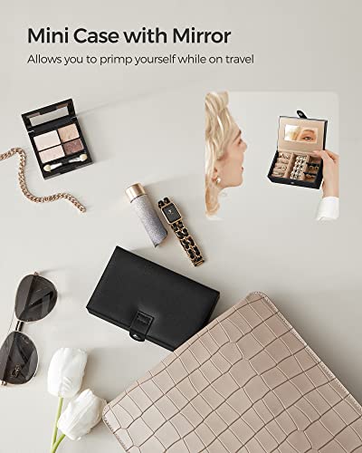 [Mini Case for Travel Use] This jewelry organizer comes with a smaller travel jewelry case that you can pop into your bag to keep pairs of jewelry when traveling. Even better, the mirror inside the small box makes it easy for you to primp yourself on the go