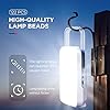【Large Area Lighting & Aesthetic Design】The rechargeable flashlight has borderless frame and aesthetic design, which offers farther brighter without shadow.The camping lantern also has a telescopic handle. The retractable transparent handle is easy for you to take the light and can protect the socket after retracting back.Hold it or hang this tent light anywhere while camping. An perfect kids flashlight.
