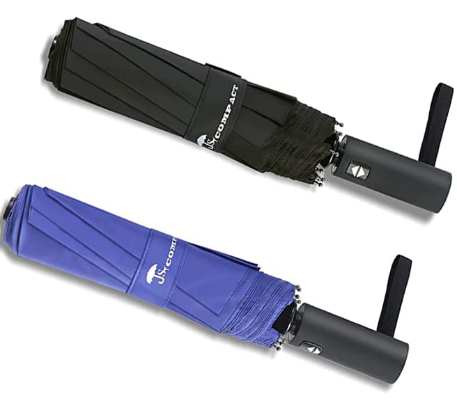 AUTOMATIC OPEN/CLOSE UMBRELLA: 2 Packs travel umbrellas all open and close automatically. Just push the button once to automatically open and press again to instantly fold the canopy closed. Auto open and close umbrella can handy for quick entry into a car, building or tent. You can quickly open or close the travel umbrella.