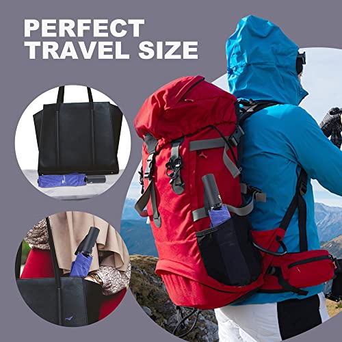 TRAVEL UMBRELLA EASY TO CARRY: The compact umbrella is only 11.5 inches when folded, making it ideal to fit inside purses, handbags, school bags, travel bags, and more. Umbrella cloth is made of high-density water repellent fabric with excellent water resistance, making dry storage a breeze. It is perfect for travel, business, camping, fishing, and daily use.