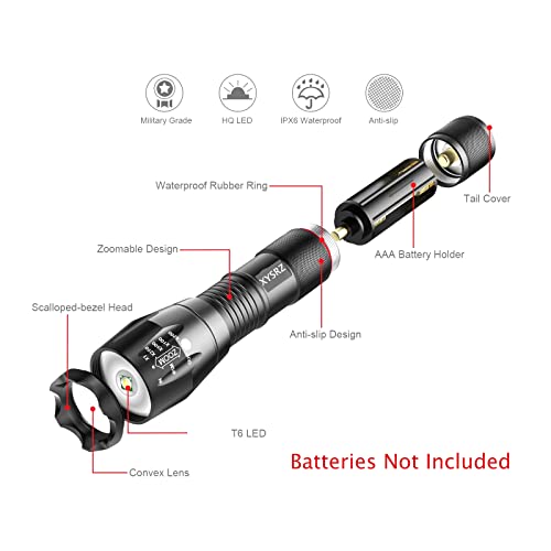 XYSRZ Tactical LED Flashlight High Lumens Military Grade 5 Modes 3000 Lumens Zoomable Waterproof Flashlight for…