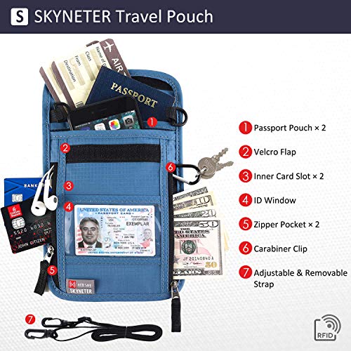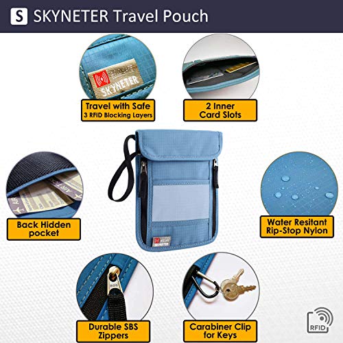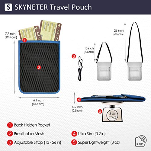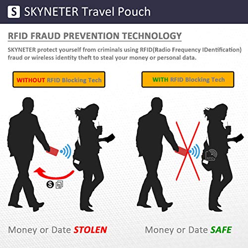 RFID BlOCKING TECHNOLOGY – SKYNETER travel neck pouch features an integrated RFID fraud prevention technology, virtually invisible to thieves, which can protect you from identify theft, unwanted scans & hi-tech pickpockets. Ensures your passport, ID & credit card information always remain secure & safe.