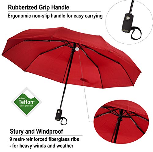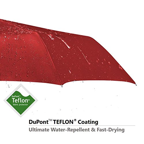 TEFLON COATING TECHNOLOGY I REPELS WATER AND IS FAST DRYING I The canopy of our premium windproof folding umbrella is composed of 210T high-density micro fabric to offer superior water repellency and maximum protection from precipitation. The windproof umbrella will repel water within seconds. The extra strong and large wind resistant canopy of our collapsible umbrella features Teflon-Coating technology for fast drying