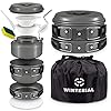 PACKS UP SMALL AND COMPACT: All of the pieces of this camping pot set are stored together and are extremely portable in their convenient carry bag. Easily pack this set in your hiking backpack. The Winterial Camping Cooking Set is an outdoorsman kitchen must haves.