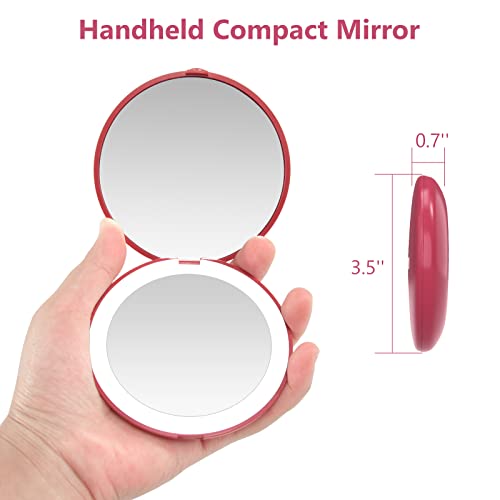 wobsion Travel Mirror with Light, 1x/10x Compact Magnifying Mirror,Handheld 2-Sided Pocket Mirror,Led Small Makeup…